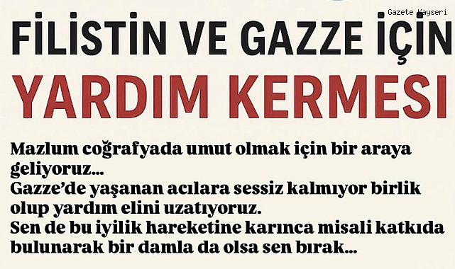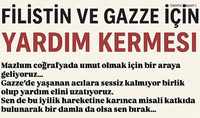 Düzenlenecek kermeste, gönüllüler tarafından hazırlanan yiyecek, el emeği ürünler ve çeşitli hediyelik eşyalar satışa sunulacak. Elde edilecek tüm gelir, Filistin ve Gazze’deki mazlum halkın ihtiyaçları için kullanılacak.