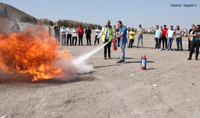 Kayseri Büyükşehir Belediyesi Kayseri Mesleki Eğitim ve Kültür A.Ş. (KAYMEK) tarafından personeline, olası bir yangın durumunda yapılması gerekenleri içeren yangınla mücadele eğitim verildi.