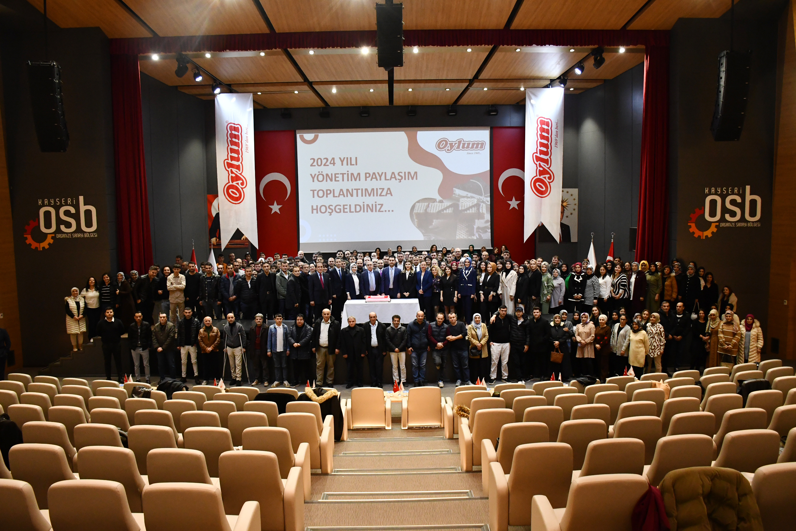Oylum Sınai Yatırımlar Anonim Şirketi 2024 yılı Yönetim Paylaşım toplantısı yoğun bir katılım ile gerçekleştirildi. Yönetim Kurulu Başkanı Yılmaz Büyüknalbant, görevi Yener Büyüknalbant’ta devrederek Onursal Başkan oldu. Oylum Sınai Yatırımlar Anonim Şirketi 2024 yılı değerlendirdi. Kayseri OSB Ahievran Konferans Salonunda gerçekleşen 2024 yılı Yönetim Paylaşım toplantısına, Oylum Sınai Yatırımlar A.Ş Yönetim Kurulu Başkanı Yılmaz Büyüknalbant, Genel Müdürü Yener Büyüknalbant, Satınalma ve Kurumsal İletişim Direktörü Begüm Büyüknalbant, Dış Ticaret Direktörü Yeşim Eminel, yönetim kurulu üyeleri, müdürler ve çalışanlar katıldı.