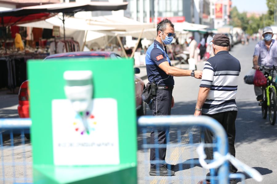 Kocasinan Belediyesi, Koronavirüs (Kovıd-19) salgınına karşı toplum sağlığını korumak adına bir yandan dezenfekte çalışmaları yürütürken diğer yandan ise pazar yerlerinde tüm tedbirleri en üst seviyede almaya devam ediyor. Pazar yerlerinin durumuna göre tüm alanları bariyerlerle kapatarak kontrollü giriş ve çıkış noktaları oluşturan Kocasinan Belediyesi, pazar yerlerinin giriş noktalarında vatandaşların ellerini dezenfekte etmeleri için dezenfektanlar bulunduruyor. Giriş-Çıkışların kontrolü ile içerdeki esnaf sayısının en fazla 2 katı vatandaş olmasına göre ayarlandığı pazar yerlerinde Zabıta Müdürlüğü ekipleri de esnafın eldiven ve maske takması ile tezgahların üçer metre aralıklı olması için kontrollerini gerçekleştiriyor.